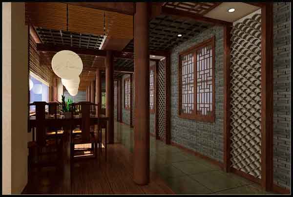 中式茶楼设计 庭院的植物选择标准: 植物是庭院中不可缺少的因素,对庭院内的山石景观起衬托和营