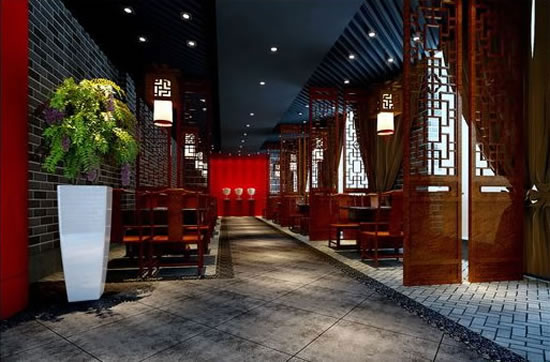 本案面积并不大,但是要力求视觉开阔,营造大气,高雅的分为,因此在茶楼古典 中式装修设计中,