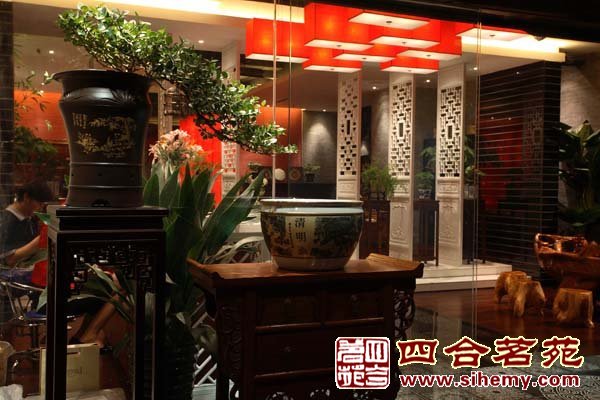 红木家具摆设其中,展现出一派深沉的意味,其上陈列了古董,也为室内增添了优雅的气氛。