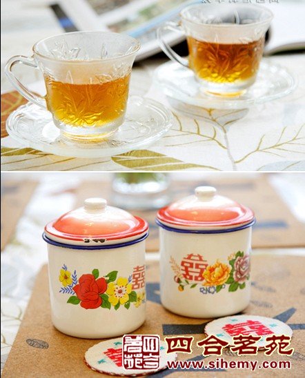 旧式的茶器,现在市场上已经很难买到这种做工的了,粗糙厚实的雕花玻璃茶器是饮茶的最好器皿。