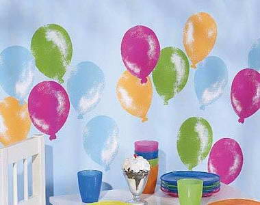清淡的蓝色墙面,搭配四种缤纷色彩的气球墙贴,以及糖果色的餐具,让整个空间呈现出一种新鲜的甜蜜感。
