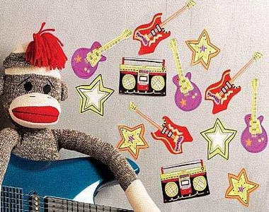用各种乐器图案装饰音乐工作室的墙面再合适不过了,让这些具有摇滚风格的墙贴点缀白色的墙面,丰富了视觉感的同时,也营造出活泼感十足的室内空间。