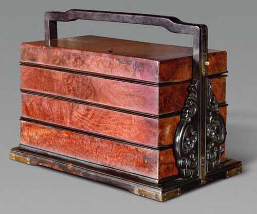 百宝箱也称首饰箱(匣)内有多层 ,做工精细,主要用存放珍贵的首 饰与与珠宝。